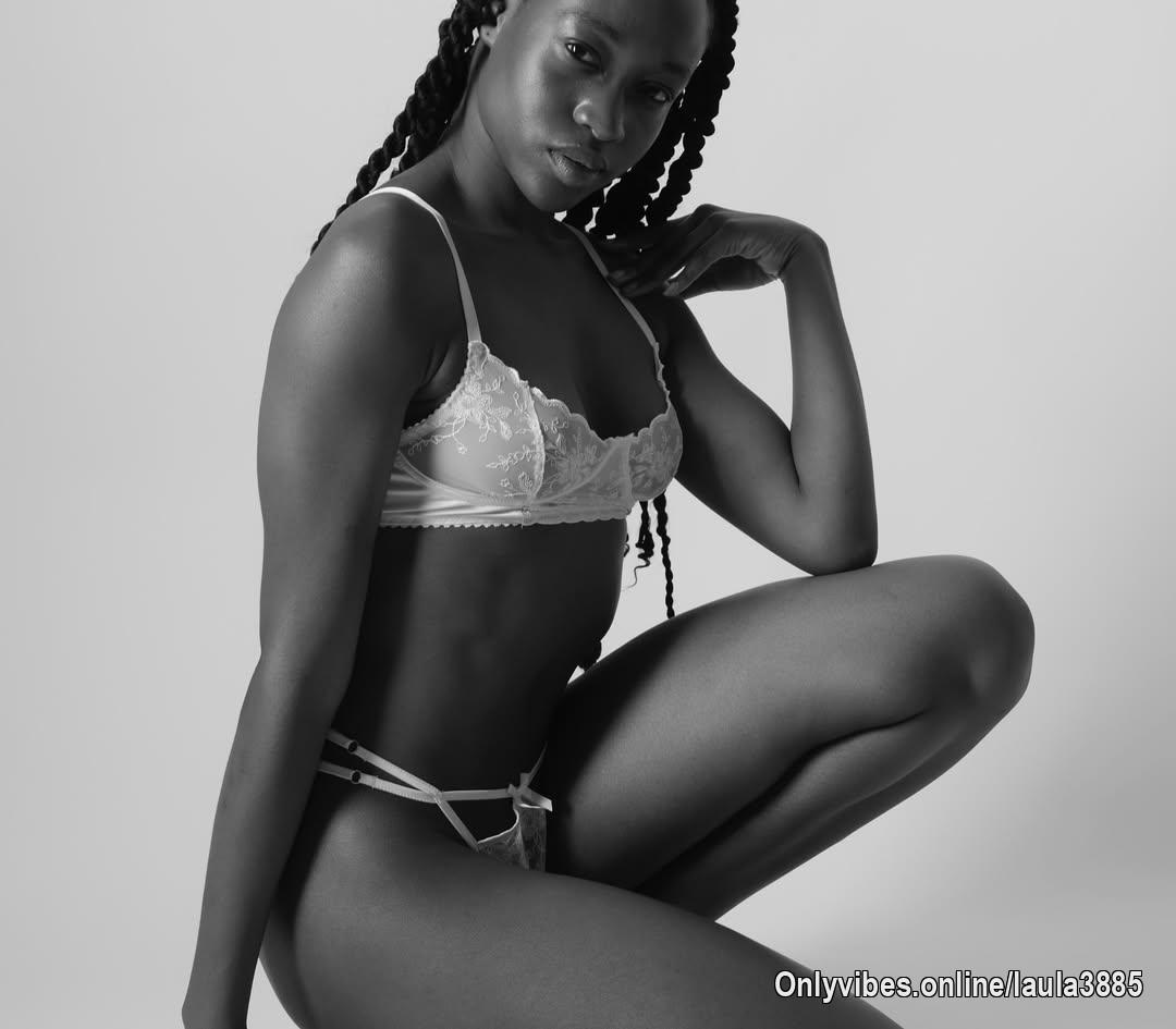 This image captures strength and elegance, blending the boldness of the black lingerie with a raw, powerful pose that exudes confidence and grace. The sleek and smooth lines of the body are beautifully highlighted, and the lighting emphasizes the beauty of the skin and form..